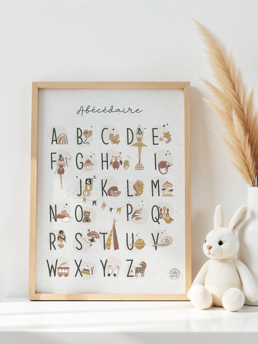 Affiche enfant pour apprendre l'alphabet. Décoration murale.